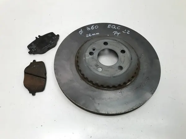 Originele achterste remschijf voor MERCEDES EQC N293, diameter 360mm, dikte 26mm, met blokken. Voertuigdetails: Merk: Mercedes-Benz, Model: EQC, Productiejaar: 2022, Motorvermogen: 408 HP, Brandstoftype: Elektrisch, Transmissie: Automatisch, Carrosserietype: Hatchback, Kleurcode: Grijs 831 Grafiet, Kilometerstand: 9800 km, Montagezijde: Achter rechts. Staat: Gebruikt. OEM-onderdeelnummer: A0004231712. Geventileerde remschijf met blokken. Snelle levering beschikbaar.