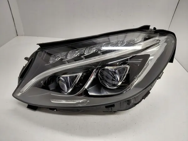 Linker Full LED ILS lamp voor Mercedes C-Klasse W205. De onderste bevestiging is vastgezet. Het glas is in goede staat zonder krassen en is niet gelijmd. Er zijn geen scheuren gevonden. De lamp is schoon van binnen en wordt zonder extra apparatuur geleverd. Werkelijke foto's van de lamp zijn beschikbaar; de verzonden lamp zal precies dezelfde modules en afmetingen hebben als getoond op de foto's.