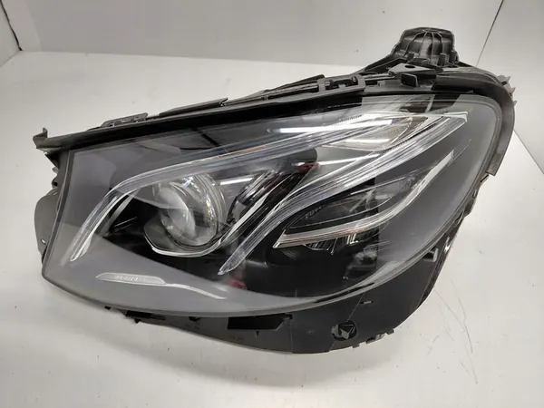Linker lamp voor Mercedes E-Klasse W213 Multibeam. Staat: gebruikt, niet gepolijst, niet gelijmd. Het glas is in goede staat zonder krassen. Geen scheuren vastgesteld. Alle bevestigingen zijn intact. De lamp is schoon van binnen en wordt geleverd zonder extra apparatuur. Echte foto's van de lamp worden geleverd (geen andere versies of jaren worden verzonden). De lamp bevat precies dezelfde modules en lengte als op de afbeeldingen weergegeven.