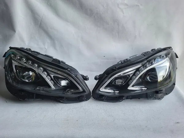 Compleet set van linker en rechter full LED-koplampen voor Mercedes E-Klasse W212 Lift. De koplampen zijn in zeer goede staat met alle originele bevestigingen en nieuwe lenzen. De onderdeelnummers zijn A2128205539 en A2128205639. Deze koplampen bevatten geen bedrading. De koplampen zijn OEM van Mercedes-Benz en geschikt voor de Europese versie.