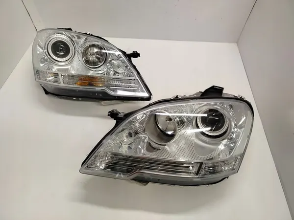 Xenon draailampen voor Mercedes ML W164 Lift, links en rechts, van één voertuig. De rechterlamp heeft lichte chroomslijtage in de hoek. Niet gepolijst of gelijmd. Het glas is in goede staat zonder krassen. Geen scheuren vastgesteld. Alle bevestigingen zijn intact. De lampen zijn schoon van binnen en worden zonder extra apparatuur geleverd. Werkelijke foto's van de lampen zijn beschikbaar; de verzonden lamp heeft exact dezelfde modules en lengtes als weergegeven op de foto's.