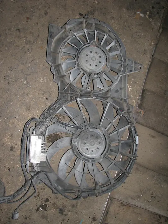 Koelventilatoren zoals afgebeeld. De ventilatoren zijn functioneel. Verwijderd van AUDI A4 B7. De behuizing is beschadigd zoals te zien is op de foto's.