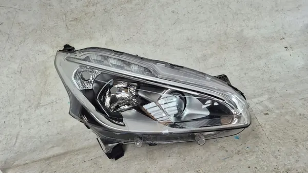 Voorste rechter lamp voor PEUGEOT 208 I 1 LIFT (2015-2019). De lamp heeft onderste en bovenste bevestigingspunten die zichtbaar zijn op de foto's. De afbeeldingen tonen het daadwerkelijke product, maar er kunnen extra krassen zijn door opslag, handling en transport van verschillende onderdelen. Naar onze mening vereist elk verkocht onderdeel opnieuw schilderen. Staat: Gebruikt.