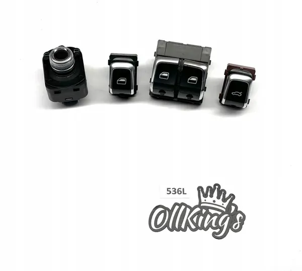 Raam schakelset voor AUDI A5 8T LIFT Coupe. Chroomversie. Origineel, volledig functioneel. OEM-onderdeelnummer omvat 8K0959851G, 8K0959565F, 8K0959855B en 8K0959831B.
