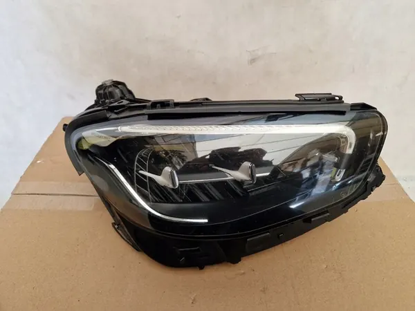 Rechter LED-koplamp voor Mercedes E-Class W213. Het onderdeel is gebruikt en heeft een beschadigde onderste bevestiging, maar is verder in goede staat. OEM-onderdeelnummer: A2139069209.