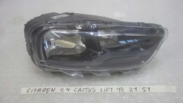 Rechter voorlamp voor Citroen C4 Cactus, OEM 9821349680, in gebruikte staat zoals weergegeven op de afbeelding. Dit is de Europese versie van het onderdeel.