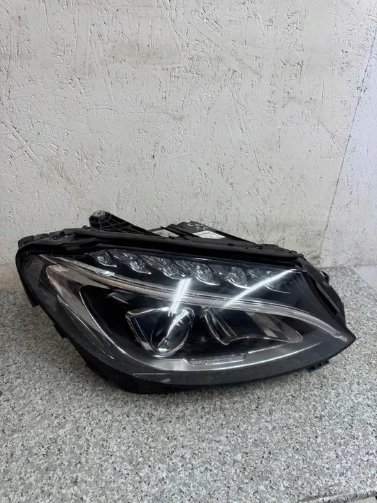 Rechter voorlamp voor Mercedes C-Klasse W205, modeljaren 2014-2021. Het onderdeel is gebruikt en beschadigd zoals op de foto's te zien is. Het is ontworpen voor de rechterkant. De fabrikant is Mercedes-Benz OE. Een btw-factuur kan op verzoek worden verstrekt.