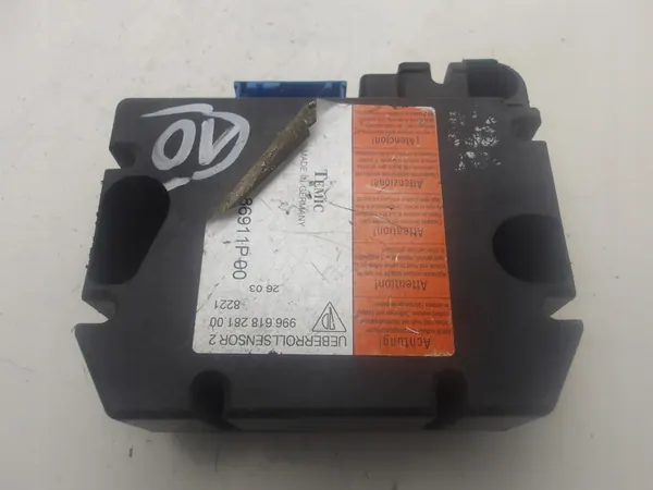 Rollbar airbag module met onderdeelnummer 99661828100. Voertuigmerk: Porsche. Model: Carrera 911 996. Productiejaren: 2001-2004. Staat: gebruikt, verwijderd uit voertuig. De module is origineel en elektronisch functioneel, maar één bevestiging ontbreekt. Onderdelen worden intact geleverd.