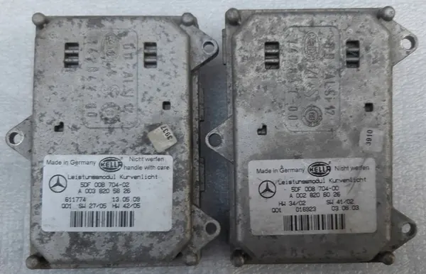 Gebruikte originele stuurmodule voor Mercedes-Benz koplampen, vervaardigd door HELLA. Toepasbaar voor modellen: E-Class W211, CLK W209, ML W164, R-Class W251. Onderdeel nummers zijn A0028206026, A0038205826, DF 008 704-005, DF008704-00.