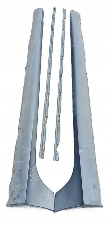 Dorpels voor VW Golf V GTI in gebruikte staat, zoals te zien op de foto's. De prijs betreft een compleet set van twee delen. Overweeg uw aankoop zorgvuldig, aangezien dit een gebruikt onderdeel is en tekenen van slijtage vertoont.
